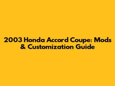 2003 Honda Accord Coupe: Mods & Customization Guide