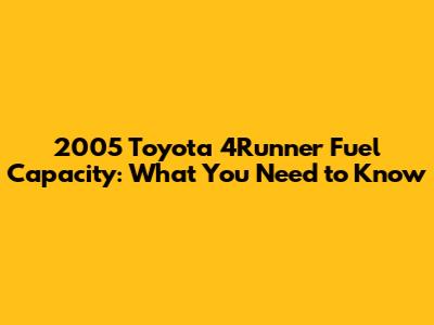 Hey guys! Let's dive into everything you need to know about the 2005 Toyota 4Runner fuel capacity. If you're a proud owner or thinking about snagging one of these reliable SUVs, understanding its fuel tank size is super important. It affects how often you'll be making trips to the gas station, especially if you love hitting the road for adventures. We'll cover the specifics of the 2005 model, how it compares to other years, and some factors that can impact your fuel range. So, buckle up and let's get started!