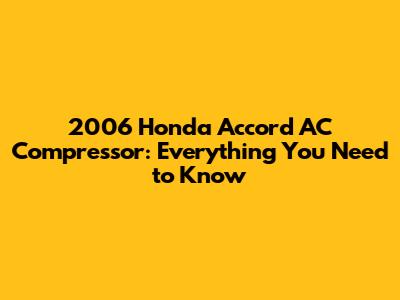 Hey there, fellow car enthusiasts! Let's dive into a common issue faced by many 2006 Honda Accord owners: the AC compressor. If you're sweating bullets in your Accord instead of cruising in cool comfort, chances are your AC compressor is the culprit. This guide will walk you through everything you need to know, from recognizing the symptoms to troubleshooting and potentially fixing the issue yourself. Get ready to learn about the heart of your AC system and how to keep it running smoothly!