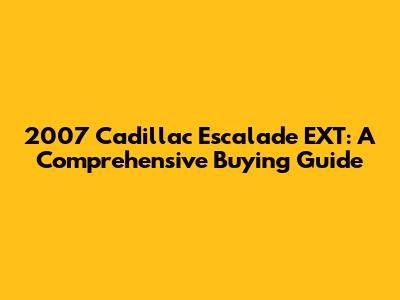 Understanding the 2007 Cadillac Escalade EXT