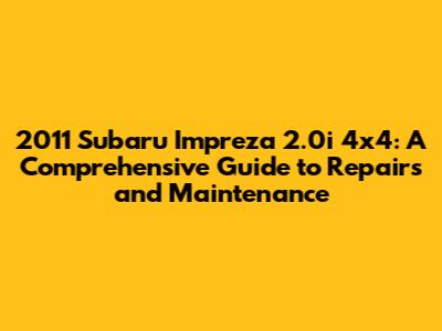 Hey everyone! Today, we're diving deep into the 2011 Subaru Impreza 2.0i 4x4. This car is known for its reliability and all-wheel-drive capability, but like any vehicle, it's not immune to issues. This guide is your go-to resource for understanding common problems, figuring out the solutions, and keeping your Impreza running smoothly. Whether you're a seasoned mechanic or a first-time car owner, this article has something for you. We'll cover everything from engine troubles to suspension quirks, giving you the knowledge you need to tackle those repairs confidently. So, grab your wrench (or your phone!), and let's get started!