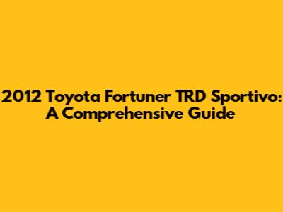 2012 Toyota Fortuner TRD Sportivo: A Comprehensive Guide