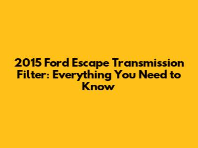2015 Ford Escape Transmission Filter: A Comprehensive Guide
