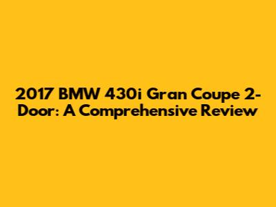 The 2017 BMW 430i Gran Coupe 2-Door is a well-rounded car that offers a compelling combination of style, performance, and practicality. Its sleek design, powerful engine, and well-appointed interior make it a joy to drive and own. While it may have a few common problems, regular maintenance can help to keep it running smoothly. If you're in the market for a sporty and stylish car that can do it all, the 430i Gran Coupe is definitely worth considering.