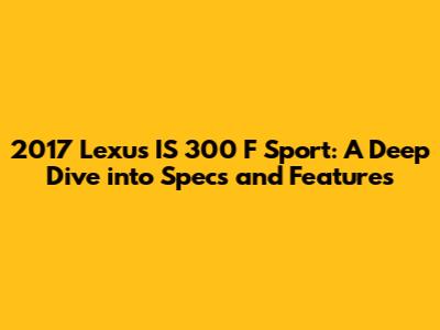 Hey car enthusiasts! Ever wondered about the 2017 Lexus IS 300 F Sport specs? Well, you're in luck! We're diving deep into everything that makes this sporty sedan a head-turner. From the engine to the interior, we'll cover it all. So, buckle up and get ready for a detailed look at this awesome car. The 2017 Lexus IS 300 F Sport is more than just a car; it's a statement. With its aggressive styling, luxurious interior, and powerful performance, it's designed to make every drive an experience. This model year brought some exciting updates and features, solidifying its place as a top contender in the compact luxury sedan market. The F Sport package adds a layer of sportiness, enhancing both the look and feel of the vehicle. Let's start with what's under the hood and then cruise through the design, features, and driving experience. This car is a symphony of engineering and design, and we're about to explore every note. Ready to explore the specifics? Let’s get started and check out why the 2017 Lexus IS 300 F Sport remains a favorite among car lovers. We will delve into the engine specs, the interior features, the technology it offers, and the overall driving experience. Plus, we'll compare it with some of its competitors to give you a well-rounded view. The 2017 IS 300 F Sport is a testament to Lexus's commitment to quality, performance, and luxury, designed to deliver an unparalleled driving experience. The model's specs will show it is made to make every journey a thrilling adventure. So, whether you're a potential buyer or just a car enthusiast, this comprehensive guide will equip you with all the essential information about the 2017 Lexus IS 300 F Sport. Let's get into the details and find out why this car has earned its spot in the luxury sedan arena and why it continues to be a popular choice among drivers who seek both performance and sophistication in their ride. It's a blend of power, style, and advanced features, all wrapped into a sleek and sporty package. Get ready for an informative ride!