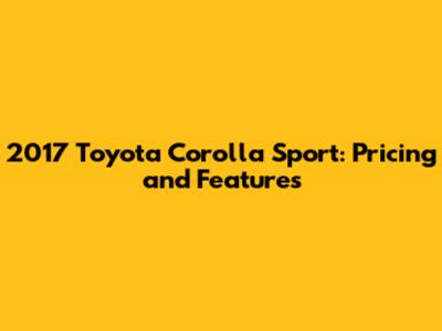 2017 Toyota Corolla Sport: Pricing And Features