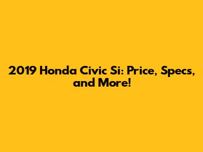 2019 Honda Civic Si: Price, Specs, And More!