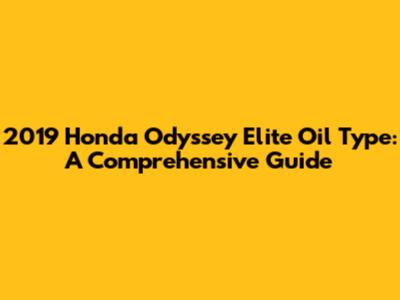 2019 Honda Odyssey Elite Oil Type: Everything You Need To Know