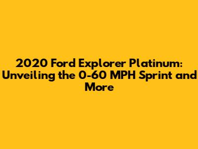 Hey everyone! Today, we're diving deep into the world of the 2020 Ford Explorer Platinum. Specifically, we're going to break down its 0-60 mph acceleration performance. I know, I know, speed is the name of the game, right? But hey, before we get too far ahead of ourselves, we'll cover a bunch of other details that make this SUV a real head-turner. From its luxurious interior to the technology packed inside, we'll leave no stone unturned. So, buckle up! Let's get this show on the road.