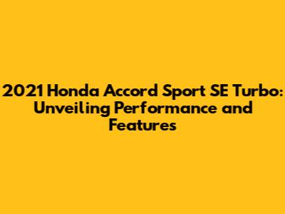 2021 Honda Accord Sport SE Turbo: Ultimate Guide
