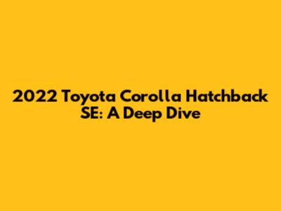 2022 Toyota Corolla Hatchback SE: A Detailed Look