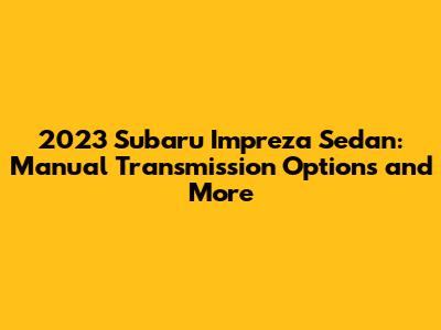 Hey car enthusiasts! Are you wondering about the 2023 Subaru Impreza sedan and whether it comes with a manual transmission? You've come to the right place. Let's dive deep into what the 2023 Impreza sedan offers, focusing on the transmission options, performance, and other essential features that make this car a popular choice. If you're a fan of having direct control over your driving experience, the availability of a manual transmission can be a significant factor in your decision. The Subaru Impreza has long been appreciated for its reliability, practicality, and standard all-wheel drive, making it a standout in the compact car segment. The 2023 model continues this tradition, offering a blend of comfort, technology, and safety. So, let’s get into the nitty-gritty details of the 2023 Subaru Impreza sedan and explore whether a manual transmission is part of the package. By the end of this article, you’ll have a clear understanding of what to expect and whether this car aligns with your driving preferences. Whether you’re a seasoned manual driver or simply curious about your options, we've got you covered.