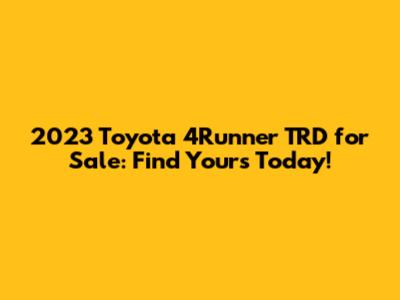 Finding a 2023 Toyota 4Runner TRD for sale can be an exciting journey. With its blend of off-road capability, reliability, and practicality, it's no wonder why this SUV is so popular. By doing your research, inspecting the vehicle carefully, and negotiating a fair price, you can drive away with the perfect 4Runner TRD for your adventures. Happy hunting, and may your trails be thrilling!