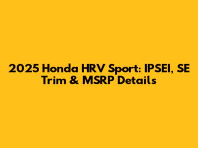 2025 Honda HRV Sport: IPSEI, SE Trim & MSRP Details