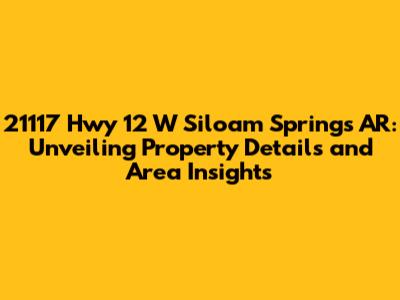 Hey guys! Ever wondered about a specific property and wanted to dig a little deeper? Let's dive into the details of 21117 Hwy 12 W, Siloam Springs, AR. This article will explore everything from the property's characteristics to the surrounding area, giving you a comprehensive overview. We'll cover key aspects such as location specifics, property features, and what makes Siloam Springs a great place to be. Whether you're a potential buyer, a neighbor, or just curious, this guide is for you. Let’s explore the allure of this address and what it has to offer. Understanding the details of a property goes beyond just the physical structure; it includes the community, local amenities, and the overall environment. So, buckle up as we embark on this informational journey! This in-depth exploration aims to provide a clear picture of what it’s like to live or invest in this part of Siloam Springs. We'll also touch on nearby attractions, local schools, and other essential services that contribute to the quality of life in this area. Our goal is to ensure you have a well-rounded understanding of 21117 Hwy 12 W and its surroundings. Let’s get started and uncover the unique aspects of this location!