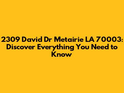 Hey guys! Are you looking for information on 2309 David Dr, Metairie, LA 70003? You've landed in the right spot! This article dives deep into everything you need to know about this address. Whether you're a prospective buyer, a curious neighbor, or just doing some real estate research, we've got you covered. We'll explore the property details, local amenities, neighborhood vibes, and anything else that makes this location unique. So, buckle up and let's get started!