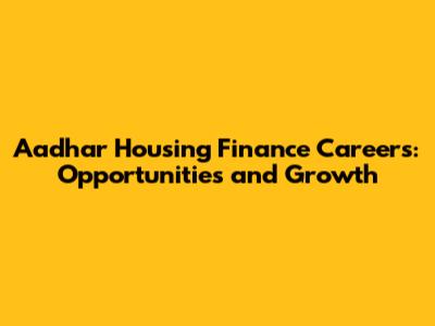 Aadhar Housing Finance Careers: Opportunities And Growth