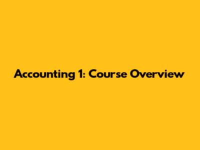 Accounting 1: Course Overview