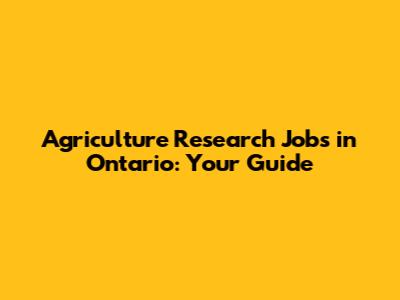 Agriculture Research Jobs In Ontario: Your Guide