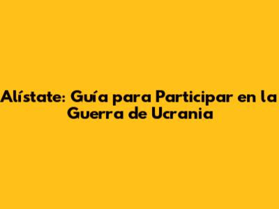 Alístate: Guía Para Participar En La Guerra De Ucrania