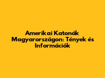 Fontos Információk az Amerikai Katonákról Magyarországon