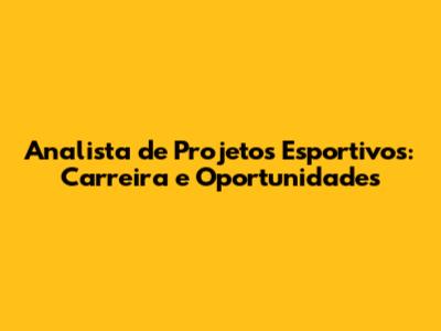Analista De Projetos Esportivos: Carreira E Oportunidades