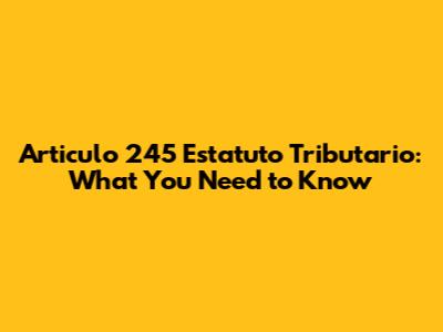 Articulo 245 Estatuto Tributario: What You Need To Know
