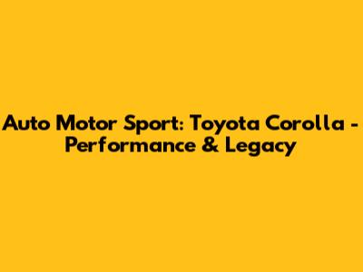 Auto Motor Sport: Toyota Corolla - Performance & Legacy