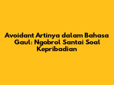 Avoidant artinya dalam bahasa gaul? Yuk, kita ngobrol santai soal ini! Mungkin kamu pernah dengar istilah "avoidant personality" atau bahkan punya teman yang tingkahnya mirip-mirip. Nah, artikel ini bakal mengupas tuntas tentang apa itu avoidant, gimana ciri-cirinya, dan kenapa sih orang bisa jadi avoidant. Dijamin, setelah baca ini, kamu bakal makin paham tentang diri sendiri dan orang-orang di sekitarmu. Jadi, siap-siap, ya! Mari kita bedah tuntas tentang avoidant personality dalam perspektif bahasa gaul yang asik.