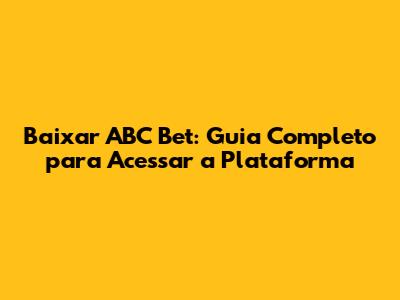 Baixar ABC Bet: Guia Completo Para Acessar A Plataforma
