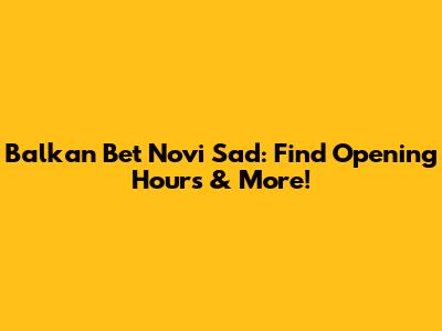Balkan Bet Novi Sad: Find Opening Hours & More!