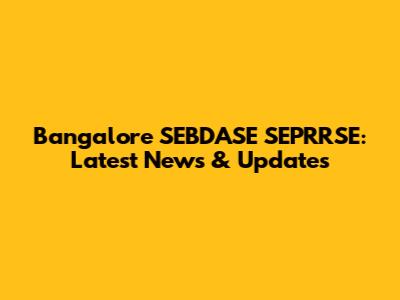 Bangalore SEBDASE SEPRRSE: Latest News & Updates