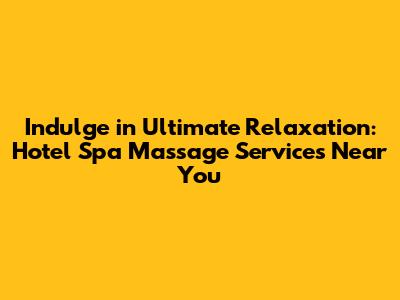 Indulge in Ultimate Relaxation: Hotel Spa Massage Services Near You