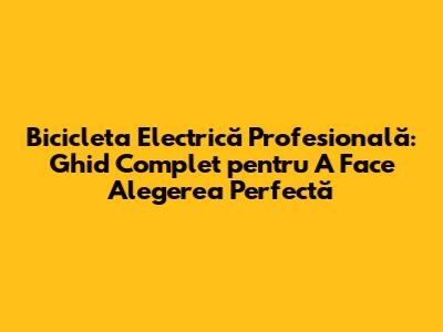 Ce este o Bicicletă Electrică Profesională?
