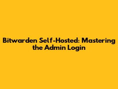 Bitwarden Self-Hosted: Mastering The Admin Login