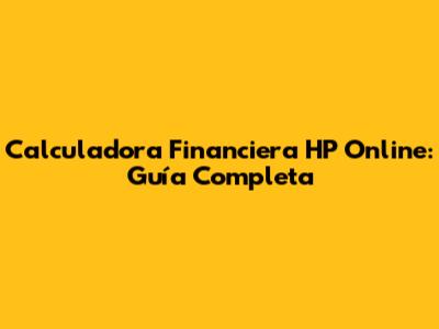 Calculadora Financiera HP Online: Guía Completa