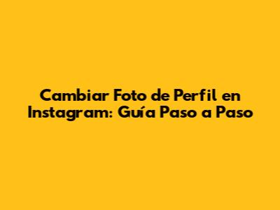 Cambiar Foto De Perfil En Instagram: Guía Paso A Paso