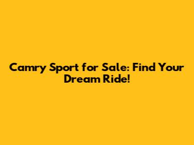 Camry Sport For Sale: Find Your Dream Ride!
