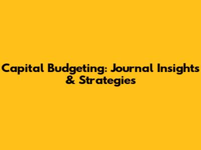 Capital Budgeting: Journal Insights & Strategies