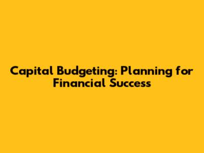 Capital Budgeting: Planning For Financial Success