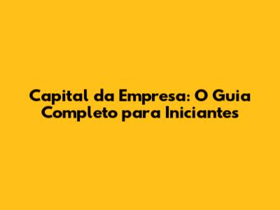 Capital Da Empresa: O Guia Completo Para Iniciantes