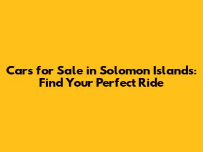 Cars For Sale In Solomon Islands: Find Your Perfect Ride