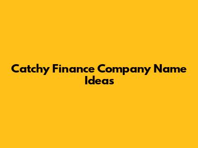 Catchy Finance Company Name Ideas