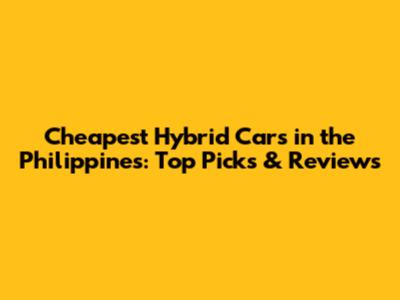 Cheapest Hybrid Cars In The Philippines: Top Picks & Reviews