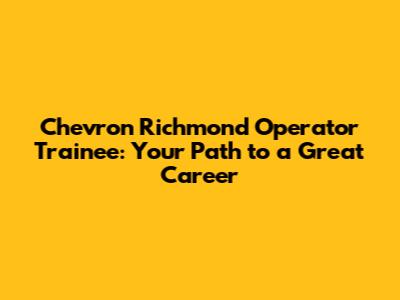 Chevron Richmond Operator Trainee: Your Path To A Great Career