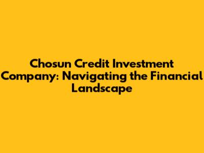 Hey everyone, let's dive into the world of Chosun Credit Investment Company! It's a name that pops up when we talk about South Korean financial institutions, and for good reason. Understanding what they do, the opportunities they offer, and how they navigate the market can be super valuable, whether you're a seasoned investor or just starting out. So, let's break it down, shall we?