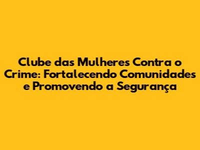 Palavras-chave: Clube das Mulheres Contra o Crime, Segurança Comunitária, Empoderamento Feminino, Prevenção de Crimes, Apoio às Vítimas de Violência, Voluntariado, Ações Comunitárias, Mulheres na Segurança, Proteção Feminina, Comunidade Segura.