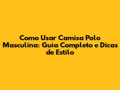 Como Usar Camisa Polo Masculina: Guia Completo E Dicas De Estilo
