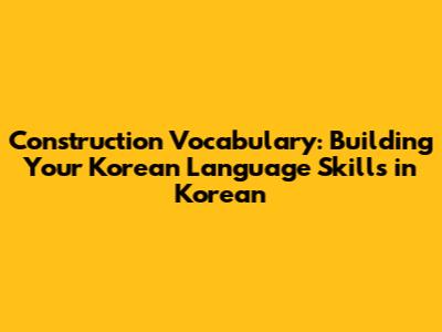 Construction Vocabulary: Building Your Korean Language Skills