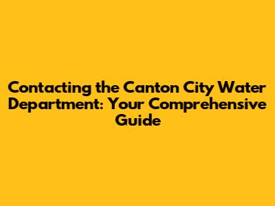 Contact Canton City Water Department: Your Guide